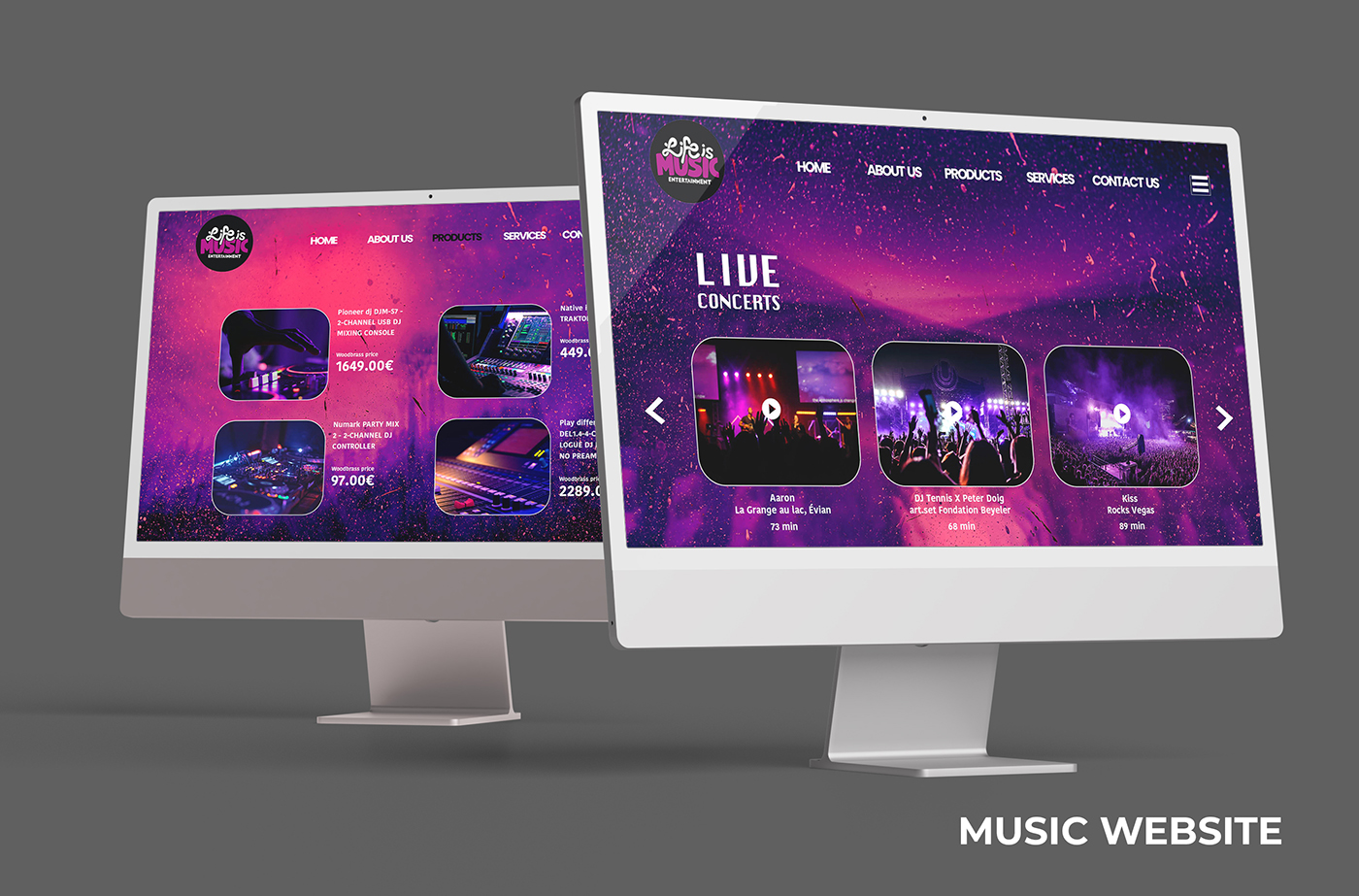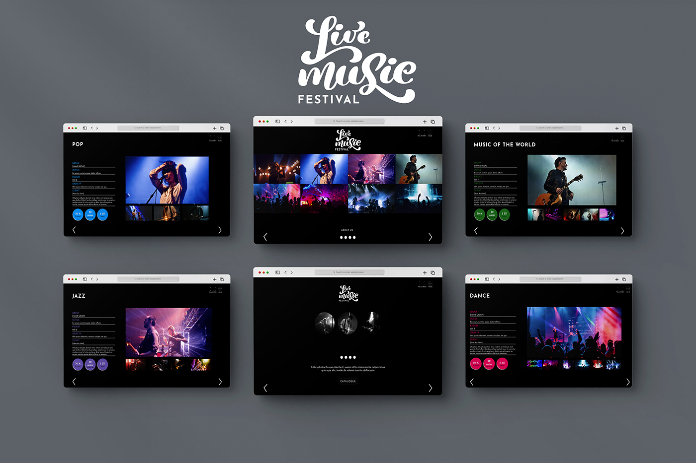 Proposition de maquette d’un site internet. Son interface contemporaine diffuse des extraits vidéos sonorisées en plein écran afin de mesurer l’expérience des festivaliers. Le site permet d’accéder au programme complet, aux biographies et discographies des artistes présents, mais aussi d’être tenu informé des actualités.